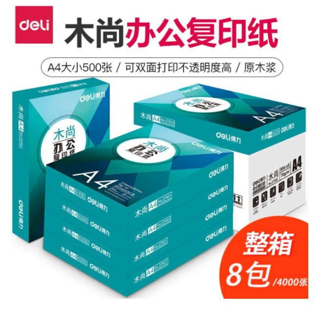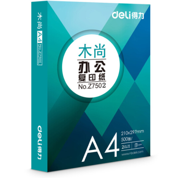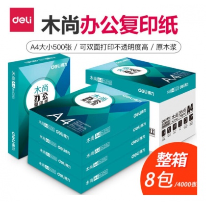 • 商品名称:得力(deli)Z7503 木尚复印纸 A4 70g 500张/包 8包/箱(4000张)