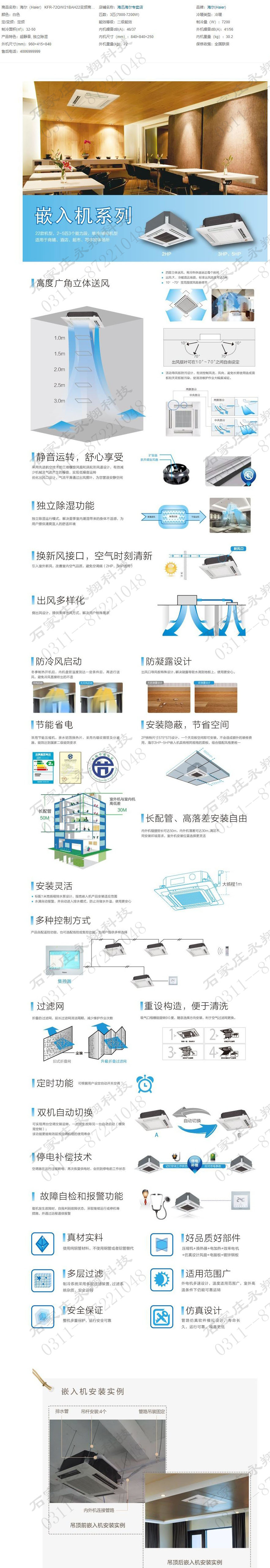 • 商品名称:海尔(Haier) KFR-72QW21BAH22变频商用天花机3P匹冷暖2级中央空调