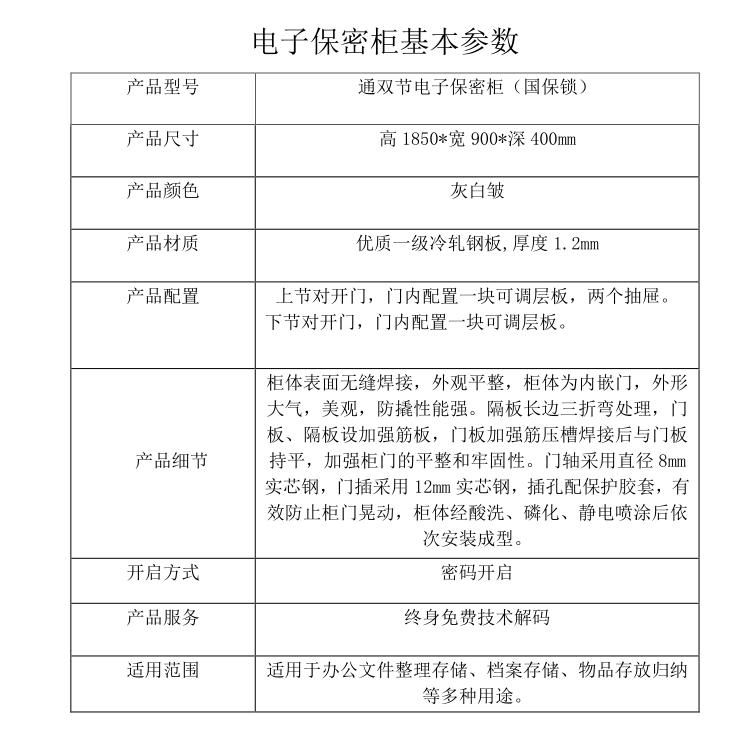 • 商品名称:通双节电子保密柜(国保锁)
