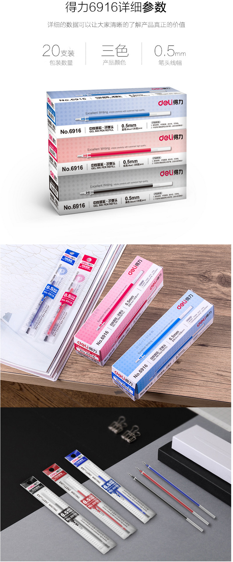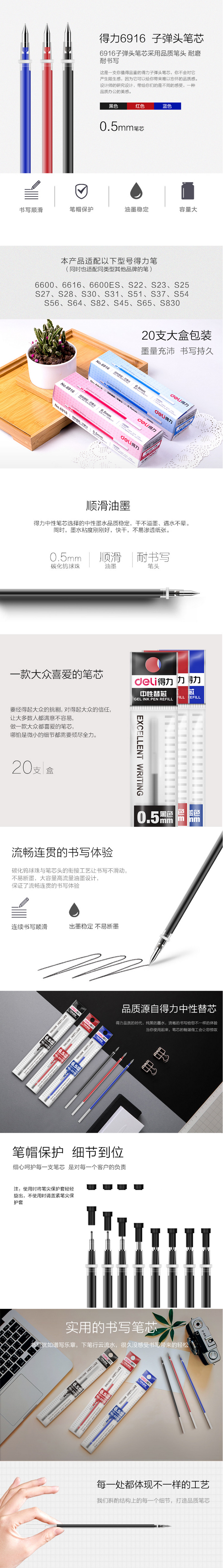 • 商品名称:得力6916中性笔芯0.5mm子弹头(黑)(支)