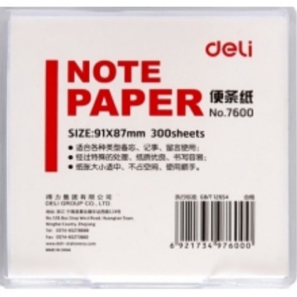 • 商品名称:便签纸 得力(deli)91×87mm/300页带盒便签纸便条纸便签本办公用品 7600